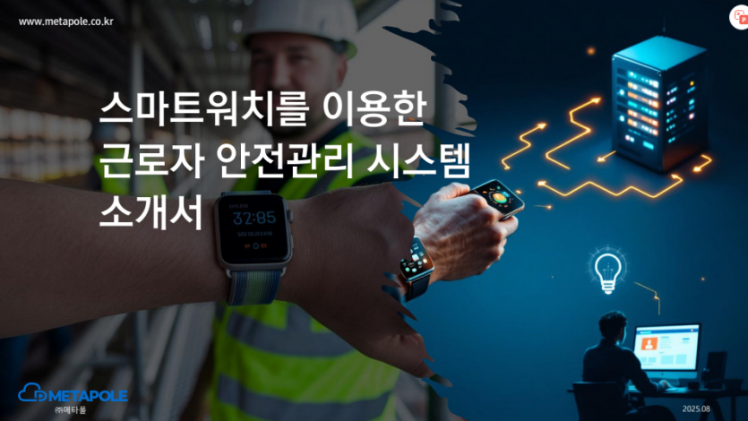 안전은 예방으로부터, 생명은 기술로부터! (주)메타폴에서 산업현장의 안전 사각지대를 해소하고 소중한 생명을 보호하기 위한 **[스마트워치 근로자 안전관리 솔루션]**을 선보입니다.